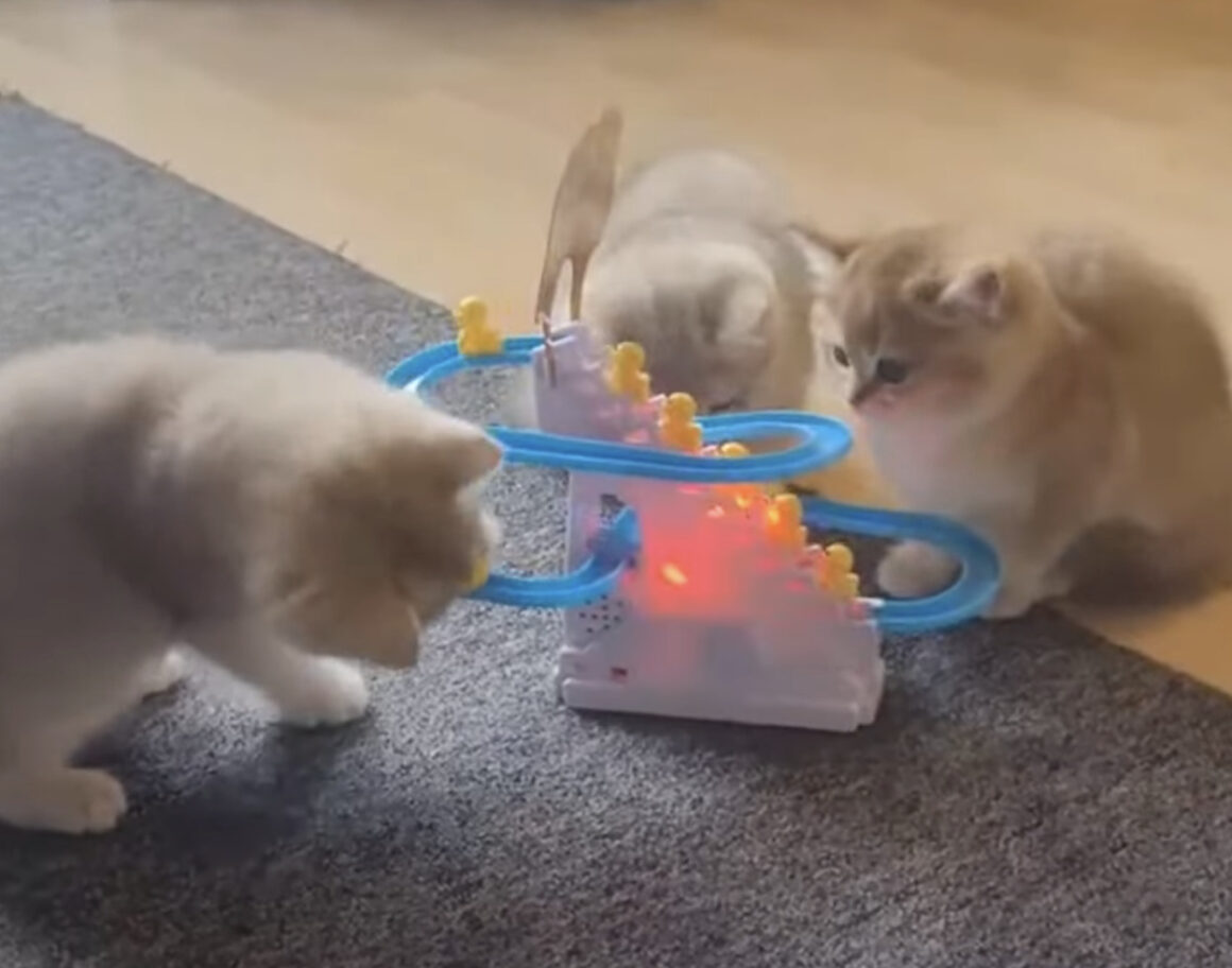 これにゃんだ? おもちゃにワクワクする子猫さんたち。