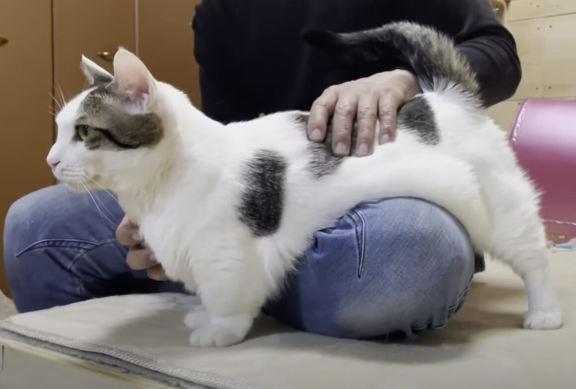 お父さんの膝にくっついて 甘えん坊タイムの猫の豆大福くん♪ 最近はお父さんにべったりなようで 甘える時はこんな感じ!! 短い手足でお父さんの膝をまたいで まずは背中をなでなでしてと要求♪ このポーズだけでもすでに可愛いのですが、 やっと終わったか...