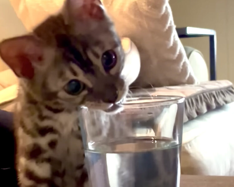 僕もコップで飲んでみたいっ! 子猫が飼い主の真似をしてみるけれど…