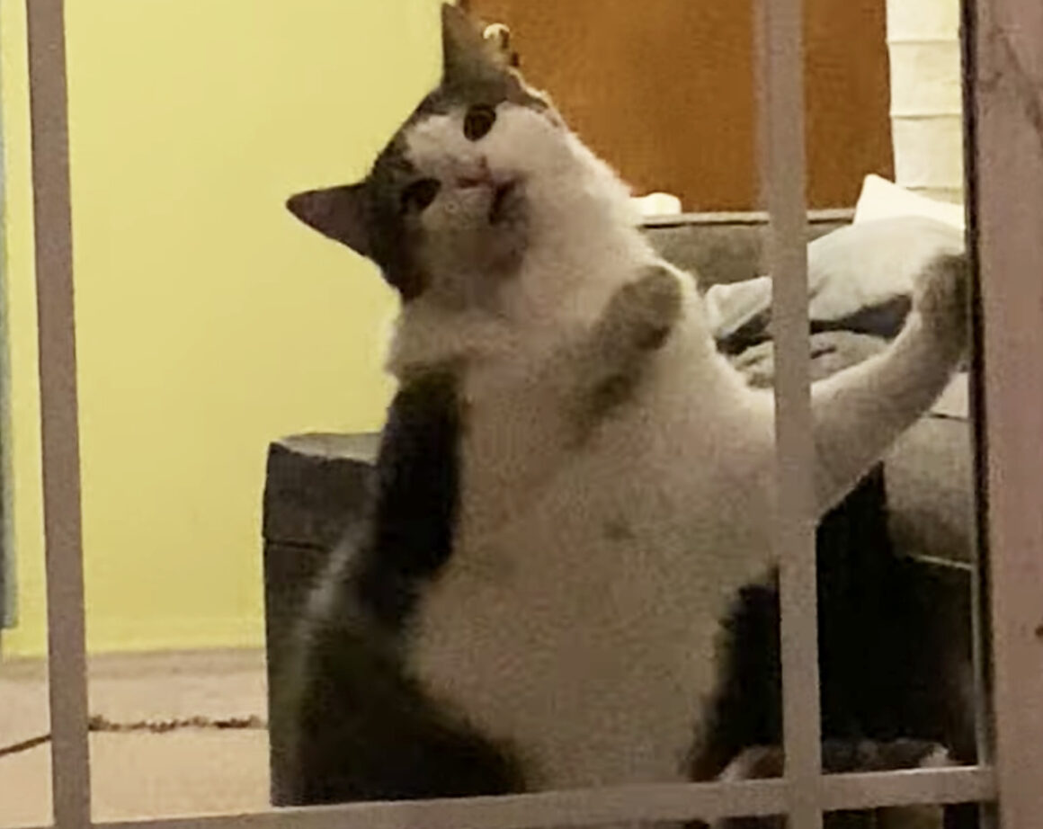 米国ワシントン州に住んでいる猫のロビン。 これまでは外に自由に出入りしていいと 許可を得ていたけれども、 何かやらかしたのか、 もう外に出ちゃいけません!と 飼い主さんから外出禁止令が出ています。 そんな時、飼い主さんが外出先から戻ると 玄関の... -
