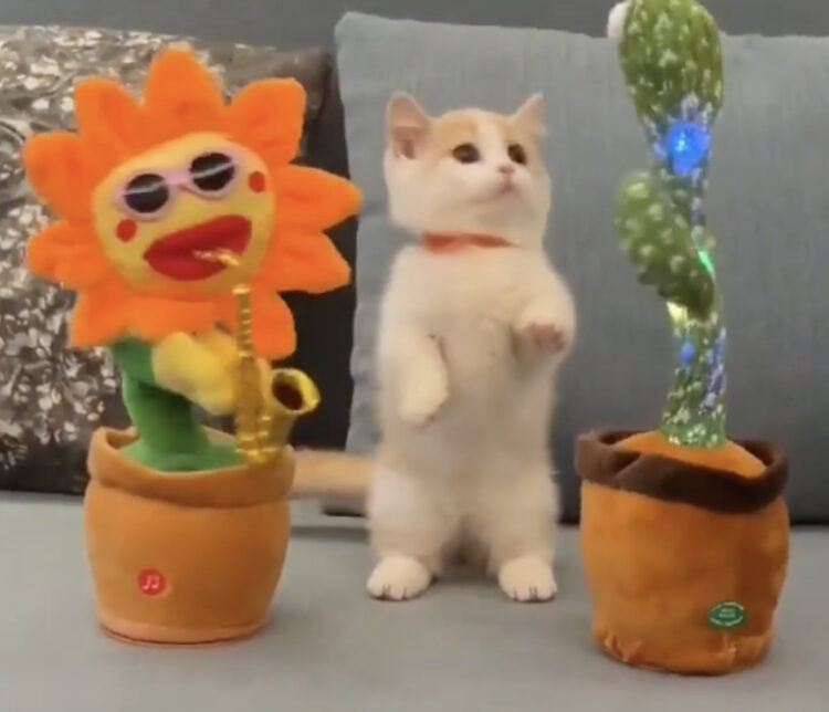 音に反応してくねくねと踊り出すおもちゃ。 見ているだけでも愉快な気持ちにさせてくれる、 楽しいおもちゃで遊んでいるのは まだまだ小さいマンチカンの子猫さん。 立ち上がると身長がおもちゃと同じくらい! 後ろ足でしっかりと立ち上がって、 動くおも... -