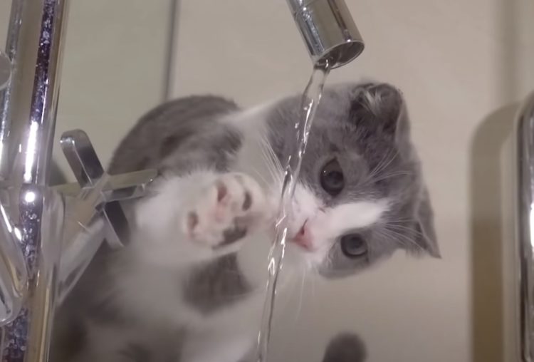 「ふむふむ、触ると冷たいの…」可愛い子猫のお水観察記。