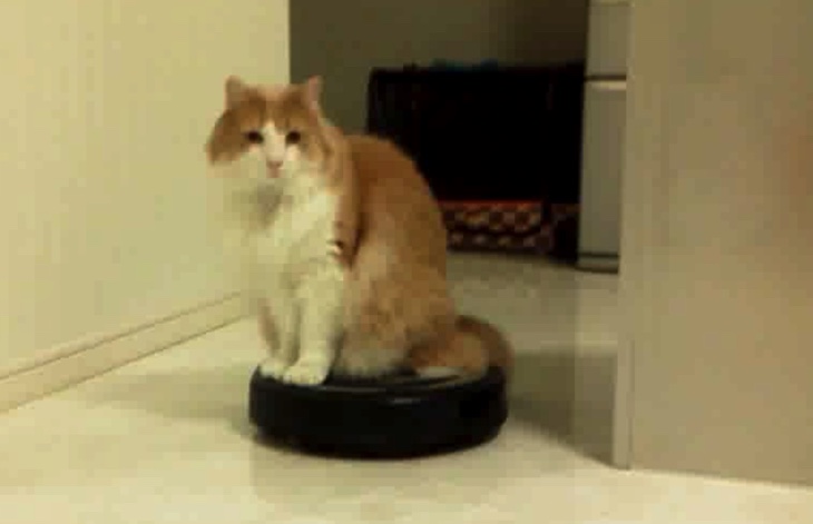 めんどくさがり屋動きたがらない、めんどうくさがりな猫ちゃんいますよね。 動くのやだし~~ なんと自動掃除機ロボットを足がわりに使うとは… でもそれじゃ行きたいところに行けないぞ! -