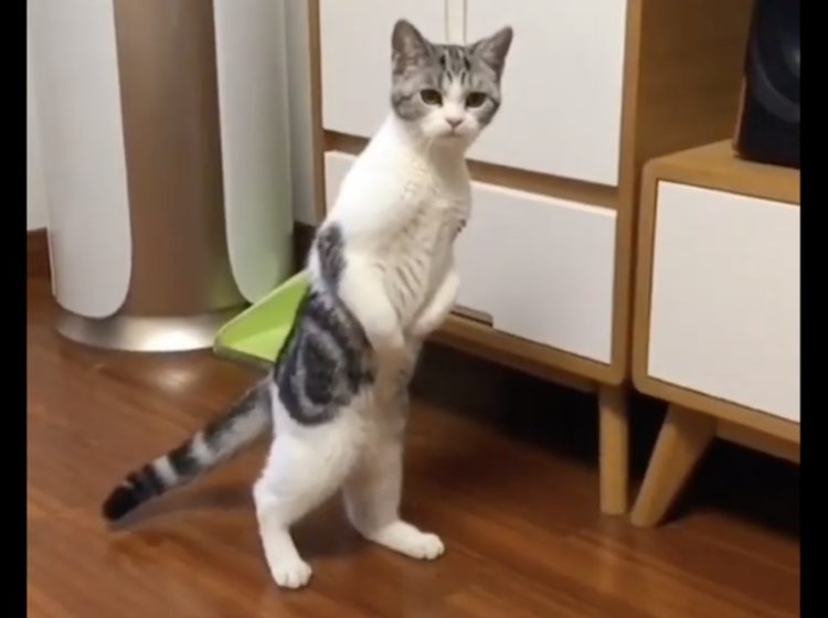 飼い主さんが視線を感じて ふと顔をあげるとそこには、 二本足で立ち上がって こちらを見ている猫さんの姿が! え?何そのポーズ、もしかして歩いてた? 片足を踏み出して、歩いていたようなその姿に 飼い主さんもびっくり! そしてなんだかバツが悪そうな... -
