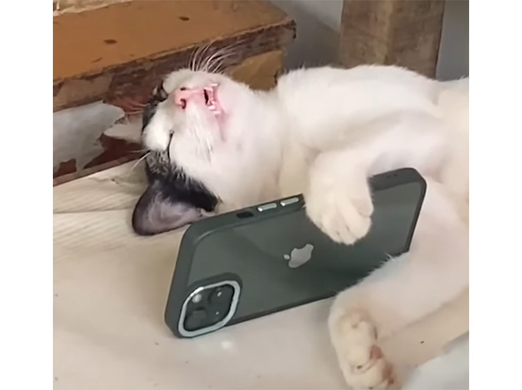 スマホを持ったまま動画を見たり SNSをチェックしているうちに ついっちついつい寝落ちしちゃった! なんてことありますよね。 そんな人間のような寝落ちをしている 無防備な猫さんを発見! スマホを片手に持ちながら、 あ、寝落ちしている 笑 眠っていても... -