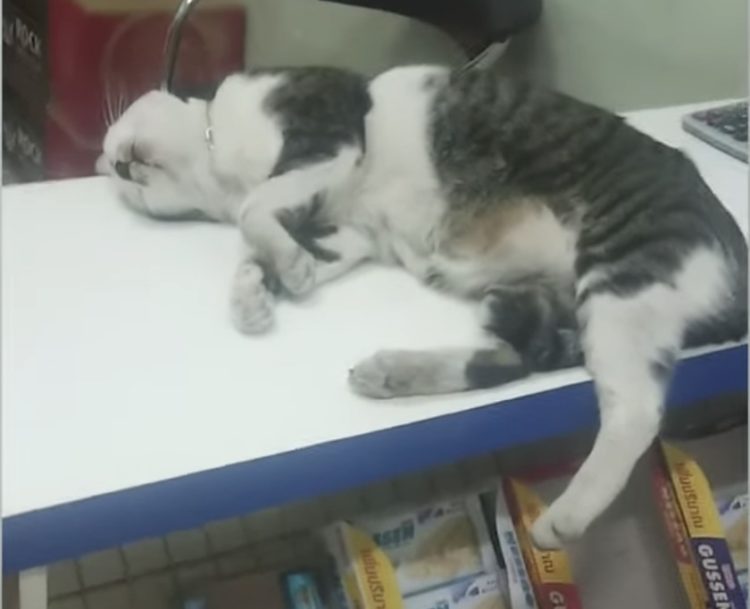 タイで撮影された映像です。 お店で飼われている猫さん。 肩書きは「レジ担当」として、 店員さんやお客さんに可愛がられています。 毎日きちんと出勤しているそうで 遅刻はしないタイプのようです。 しかし...勤務態度に問題あり? お店を開けて数分する...