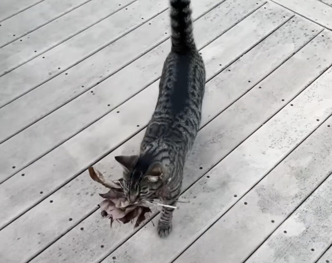 頑張る姿が可愛すぎ! 飼い主に毎日プレゼントを運ぶ猫。