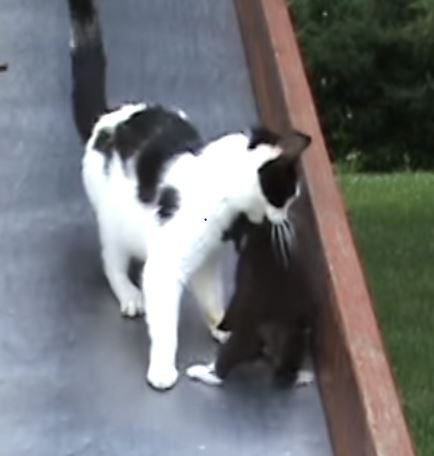 滑り台のうえで過ごしていた猫の親子。 子猫が滑り台から運悪く滑り降りてきました。 親猫は、子猫を滑り台の上に連れ戻しますが… なんと! 別の子猫が滑り台から滑り降りてきて…滑り台の下まで落ちちゃいました。 「下まで落ちちゃったよ。ママ早くたす...