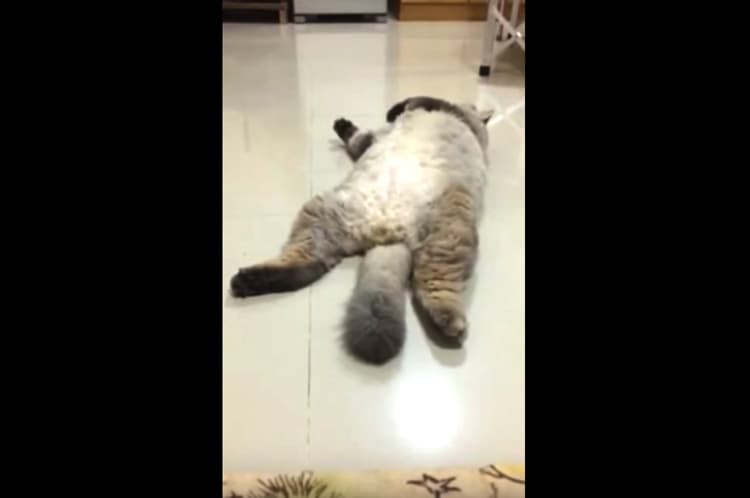 もはや「猫の開き」状態?!無防備すぎる猫さん。