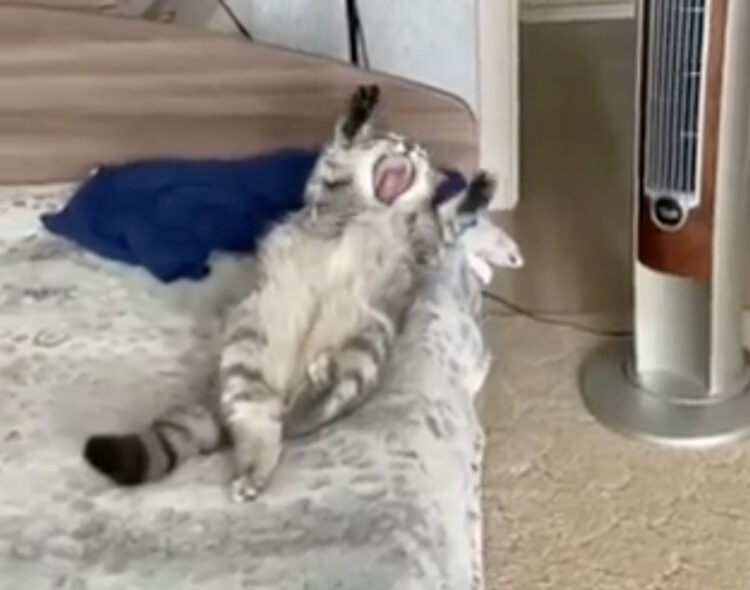猫「よく寝た〜!」 寝起きのバンザイが可愛い♡