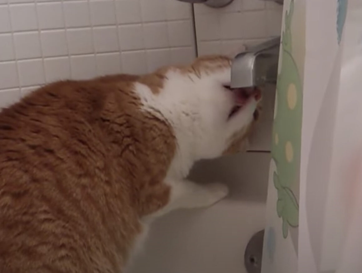 水にこだわりがある猫さん、バスルームでしっかり水分補給!