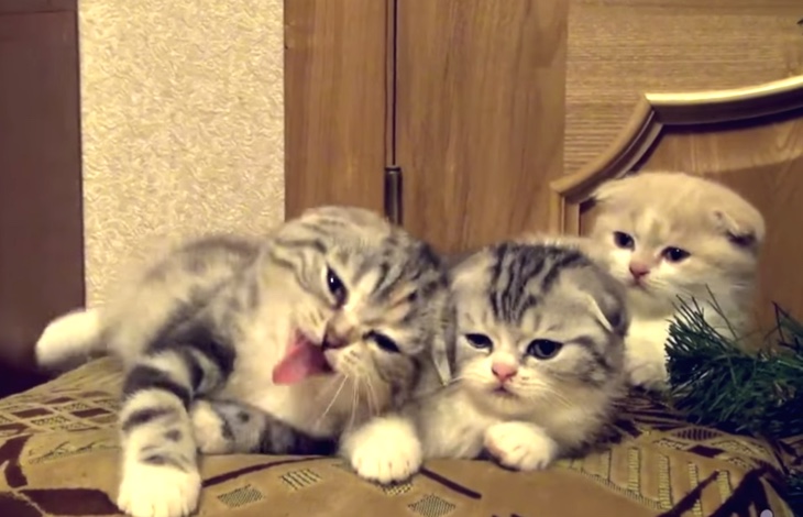 ベッドの上でくつろぐ3匹の子猫さん。 なんだかみんなとっても眠そう… 朝は弱いんでしょうか。 飼い主さんが話しかけていると、 左にいた子猫さんが、ふぁぁ〜っと大きなあくび。 やっぱり眠たいんだね〜、と思っていたら 今後は右にいた子猫さんがふぁぁ... -