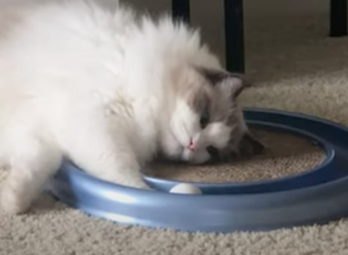 アメリカのカリフォルニア州に住んでいる 猫のチャウダーさん。 もふもふの毛がチャームポイントで いつも面白い行動をして 飼い主さんを笑わせてくれているんだそうです。 この日は新しいおもちゃを見て 元気に遊ぶ...わけでは無く、 おもちゃの上に頭を... -