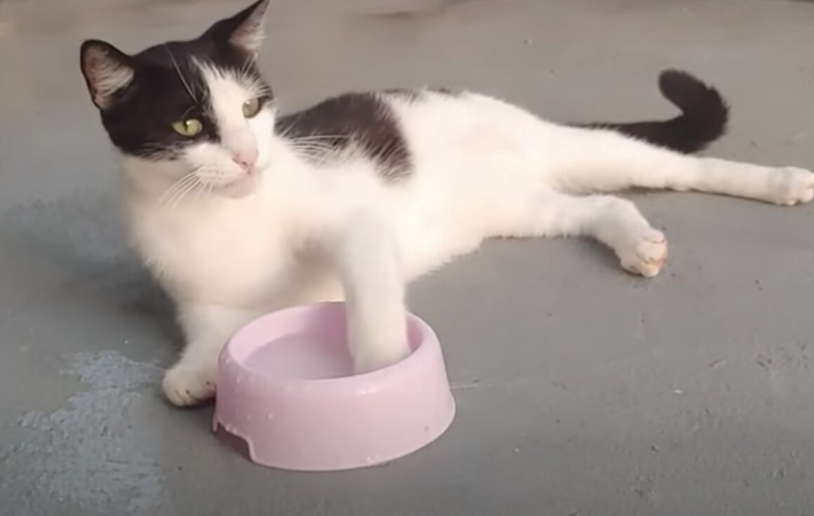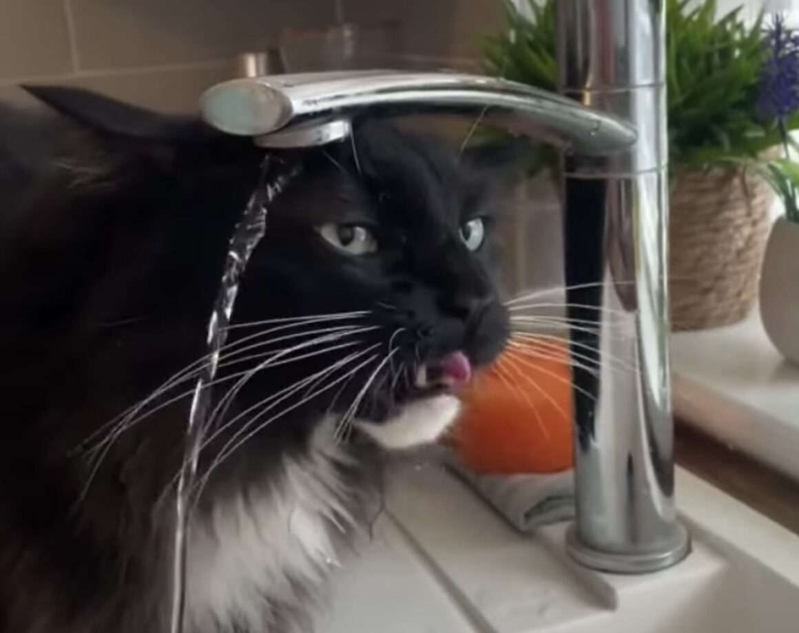 どこからツッコんだらいいかな…お水の飲み方が変な猫さん。