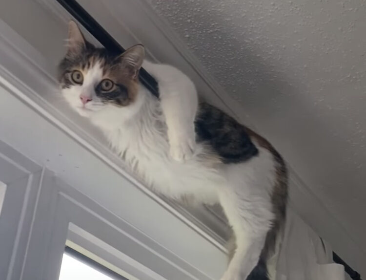 高いところが大好きな猫さん。 周りを見渡すことができるので 観察大好き猫さんは とても落ち着くんだそうです。 こちらの猫さんも、 お部屋の高いところに登って お部屋を見渡して楽しんでいます。 しかしその場所というのが... カーテンレールの上!! 片... -