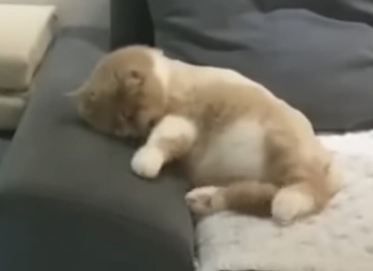 夢の中で自転車で走ってる! 寝ていても忙しい猫さん。