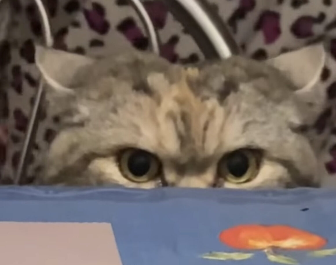そんな顔しなくても笑 飼い主のゴハンが気になって仕方にゃい。