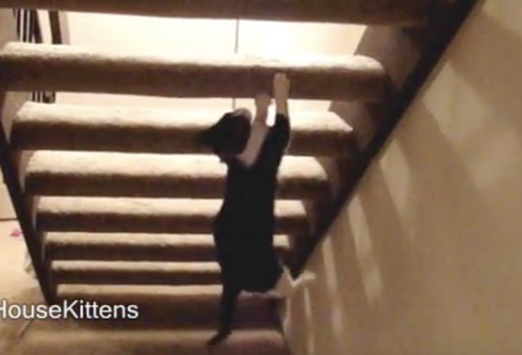 素早すぎてよく見えない! 階段の登り方がストイックすぎる猫。