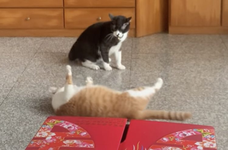 ゴロンゴロンと転がる猫同士の謎バトルが開始!