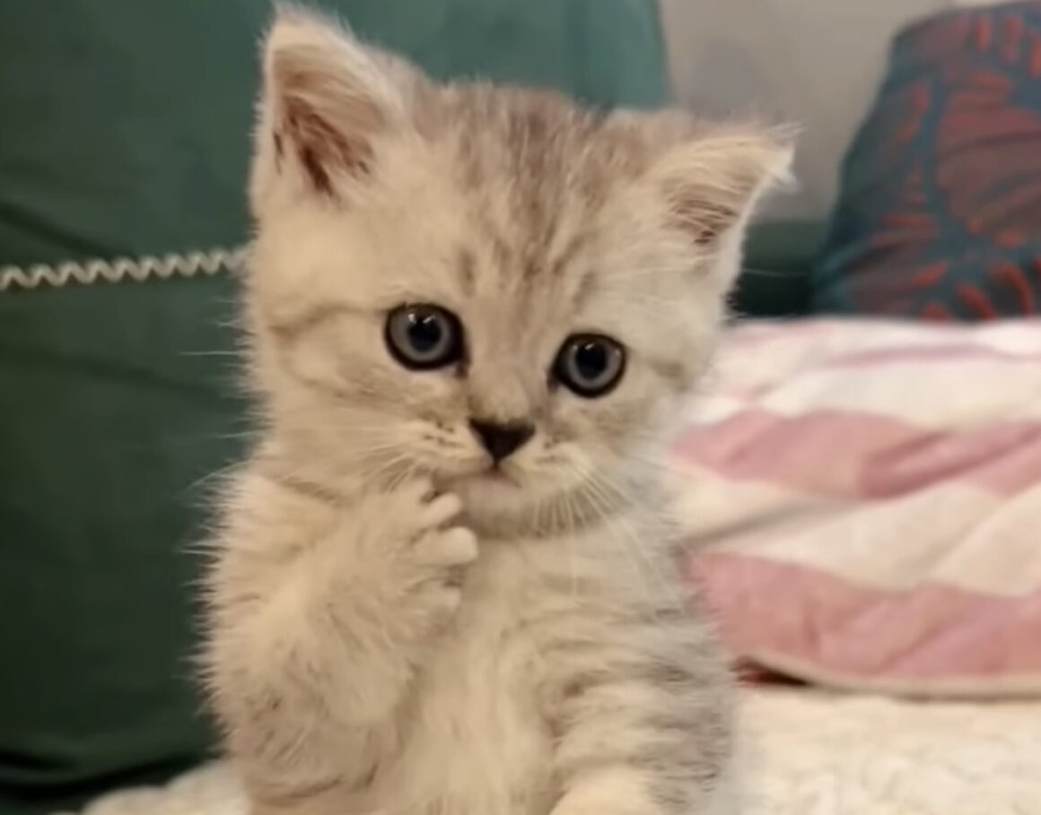 きょとんとして立ち上がる子猫、そんなに驚いてると心配になっちゃうよ!