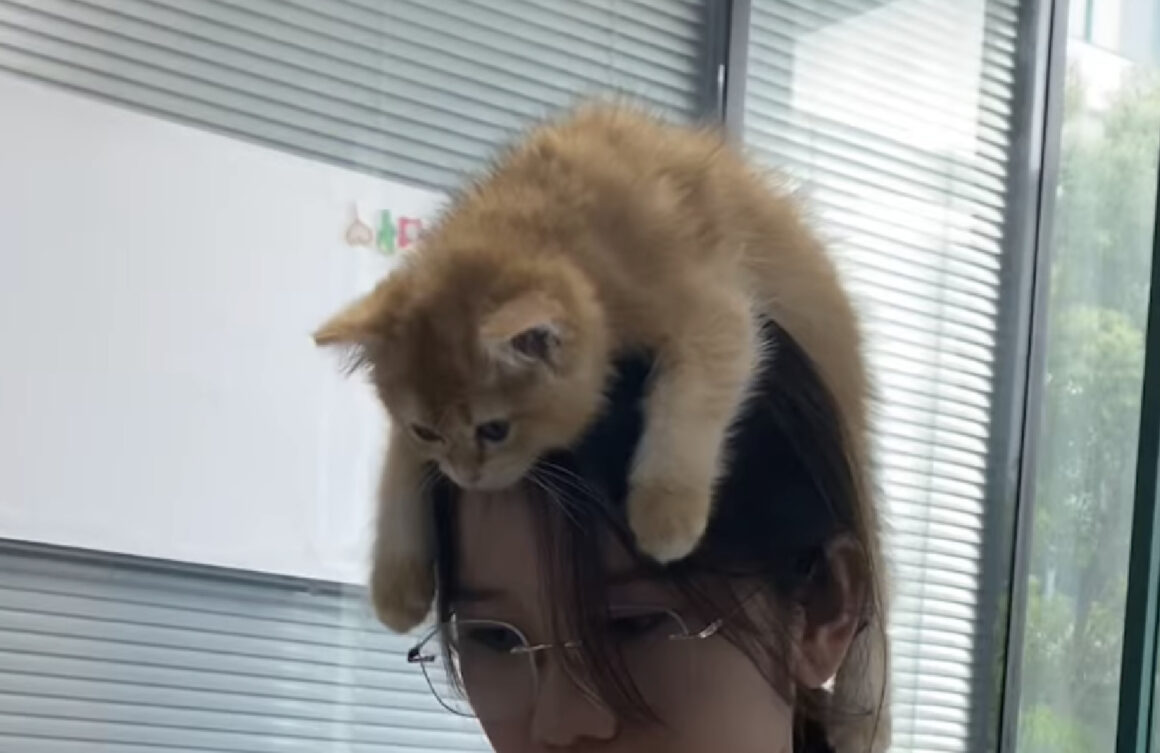 ちゃんと仕事してるかにゃ? 頭の上で監視する子猫上司!