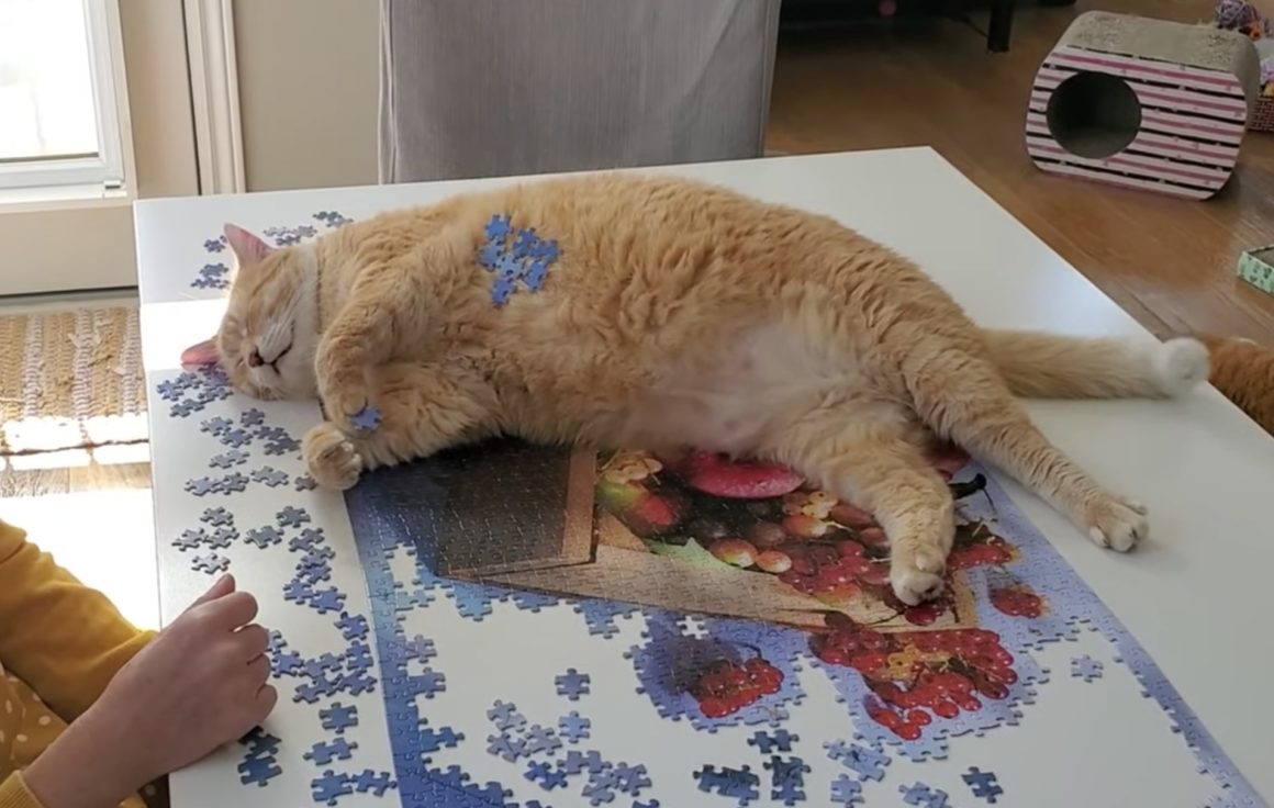 大作のジグソーパズルを作っている飼い主さん。 するとそこに、体の大きな猫さんがドーン! 思いっきりパズルの上で寝ちゃう猫さんに、 飼い主さんは慌てることなく、 そのままパズル続行! 猫さんの体の上にパズルのピースを乗せはじめました。 それでも... -
