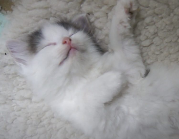 むにゃにゃ〜。遊び疲れて寝る子猫、無防備な寝顔が可愛い!