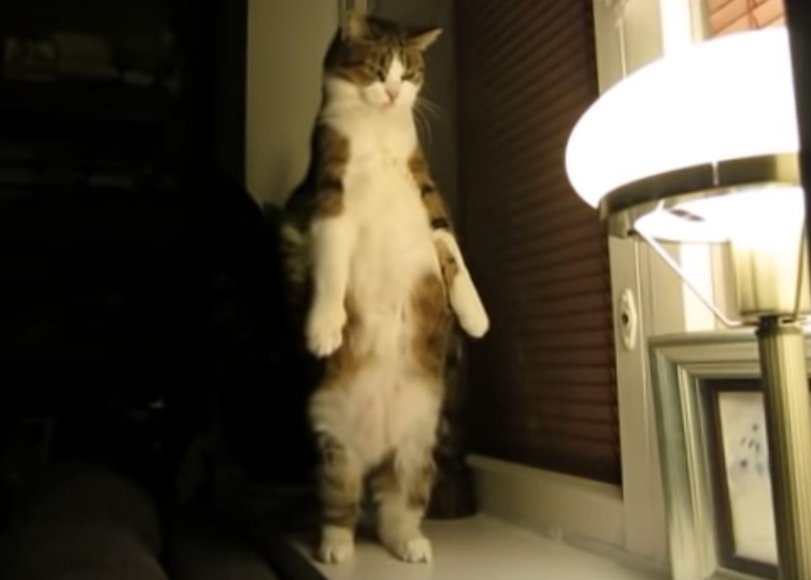 にょきーん! 立ち上がるのが上手な猫さん、変わったストレッチを見せてくれた。