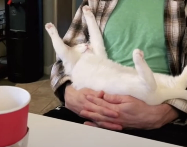 バンザイのポーズでぐっすり♪ 腕の中で眠る猫が可愛すぎる!