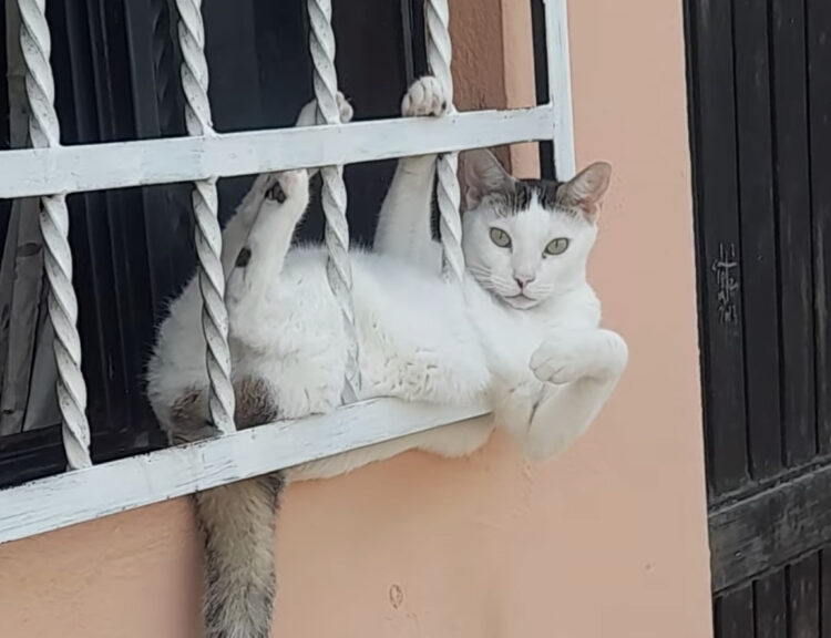 窓辺でくつろぐ猫のポーズが独特すぎて気になる!