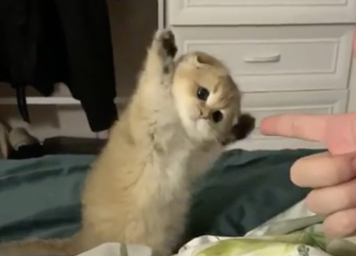 子猫に「手を上げろ!」と言ってみたら、激カワな反応が返ってきた。