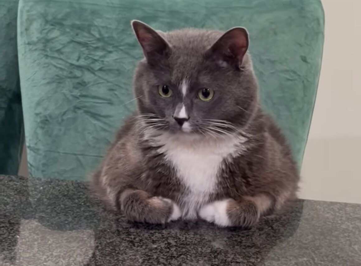 猫に「カウンターに登らないで!」と叱ったら、お行儀よく座るように!