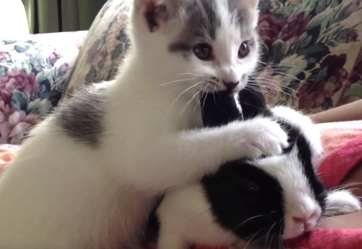 うさぎを気に入りすぎた子猫。エンドレスハムハムする