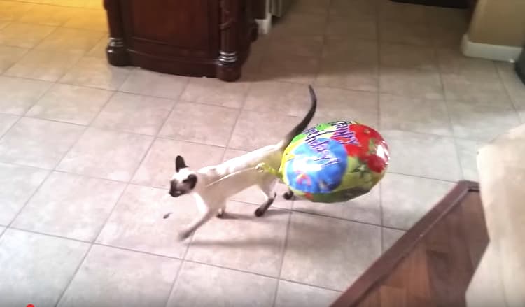 風船をもらって喜ぶ猫さん。 くわえてくるくる、お家のなかを歩き回ります。 うっかり飛ばしてしまい、はっ…! だけどひょいひょいっと高いとこに登って、 風船確保! さすが猫さんです。 出典:Bettie Dane -