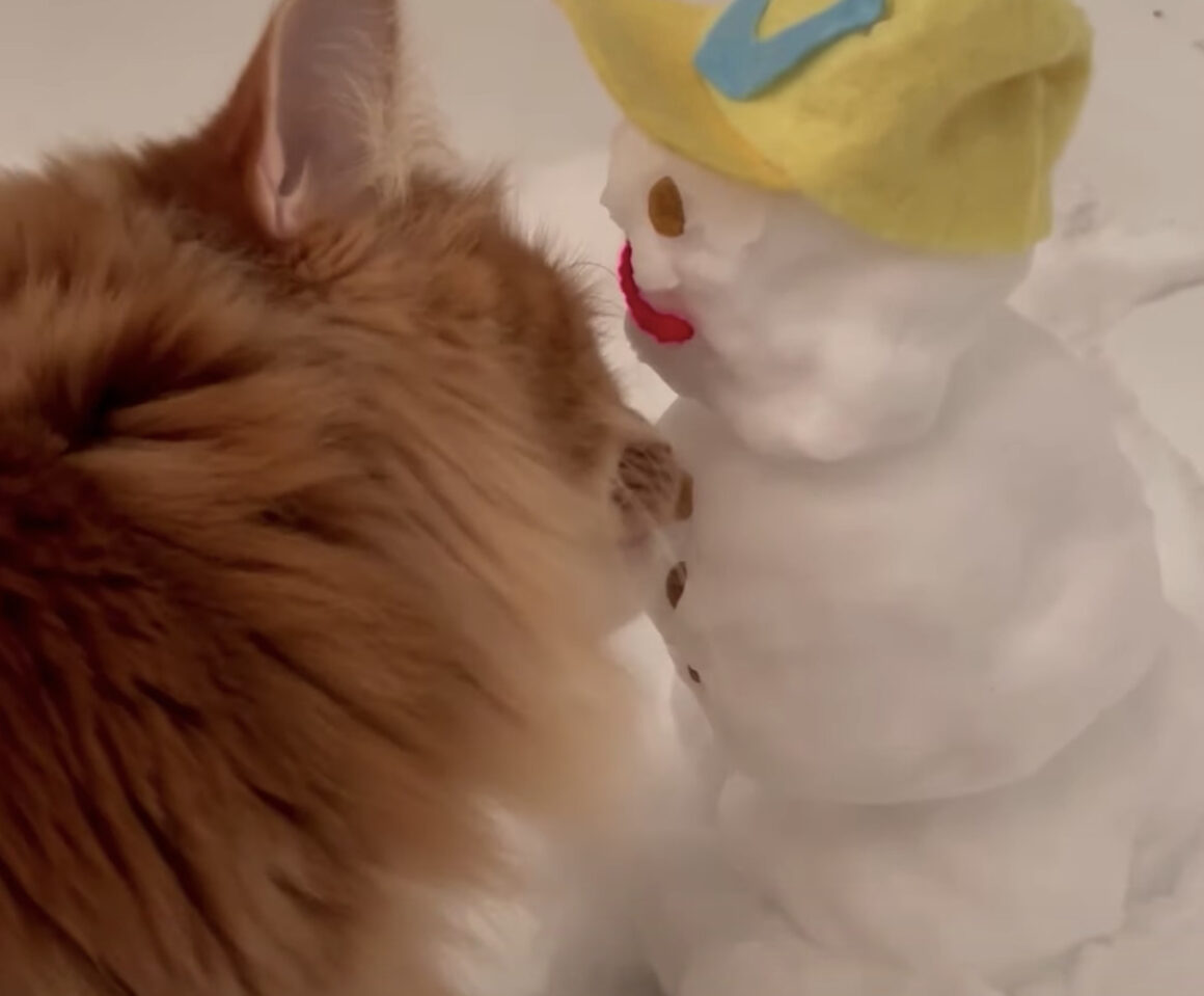 愛猫のために雪をかき集めてきた! これで室内で雪遊びができる♪