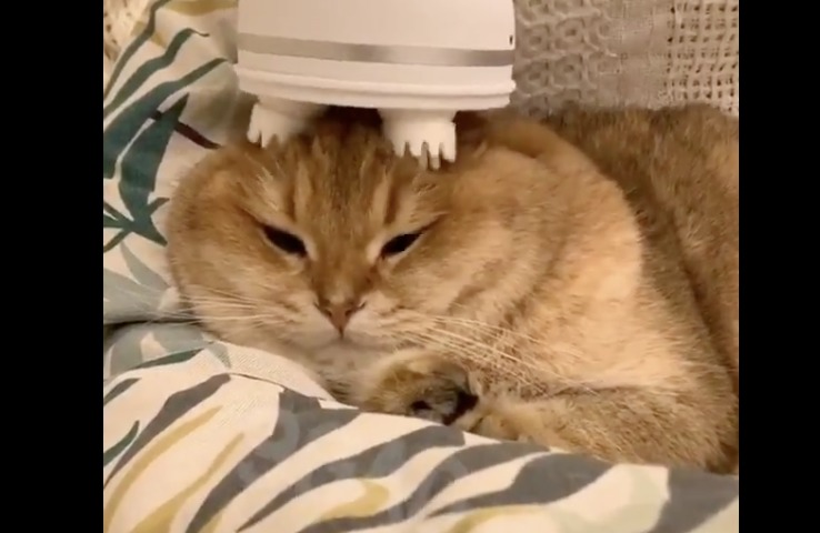 人間用の、頭をマッサージする機械。 ウィンウィンと、気になる機械音がするので 猫さんに見せると最初は警戒していましたが そっと頭に当ててみると... おや?意外と気持ちいいぞ? 順応するのが早い猫さん。 すぐに気持ちいいのが分かって、 ヘッドマッ... -