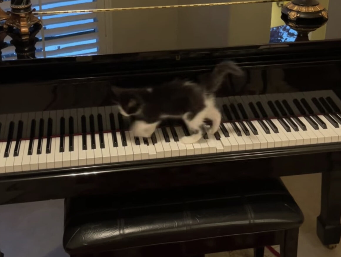 鍵盤が気に入った? ピアノの演奏を始める子猫。