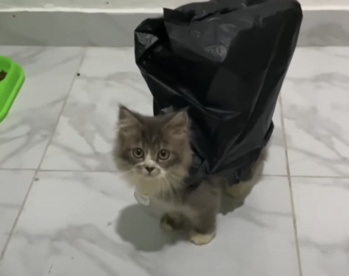 お部屋を散策している子猫さん。 その背中には、 とっても大きなビニール袋!! たくさん空気をつめこんで リュックのように背負っています。 遊んでいる時に、引っ掛かっちゃった? それでも自分が歩くたびに カサカサ音がするのを楽しんでいるみたい。 ... -