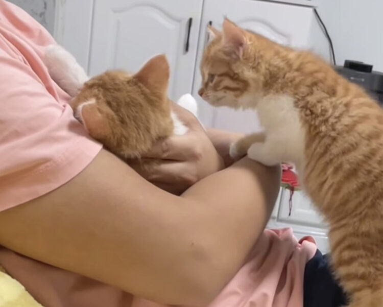 「抱っこしてもらってズルいー!」子猫にヤキモチをやかれる飼い主さんが羨ましい!
