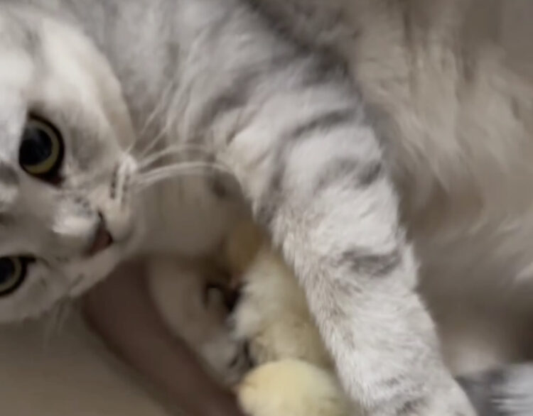 大事そうに何かを抱える猫、腕の中を覗いてみたら…
