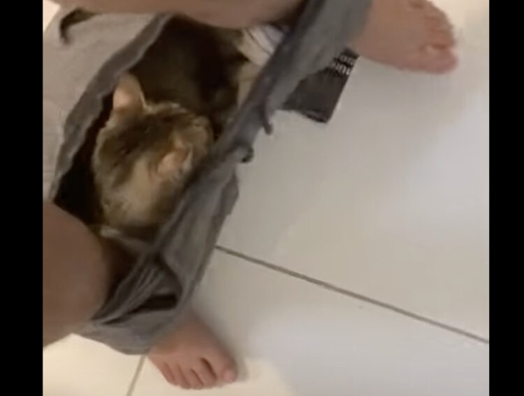 なぜそこに(笑) 子猫のせいでズボンが履けなくなっちゃった!