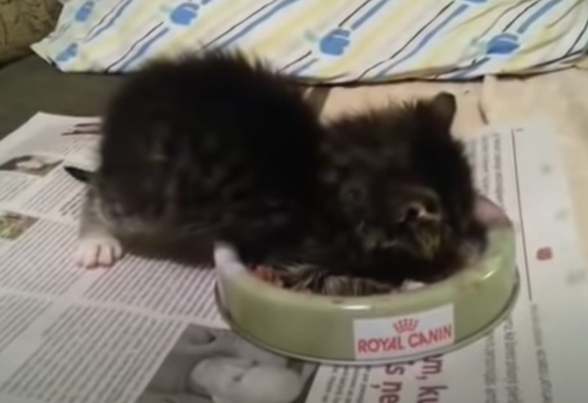 ゴハンで溺れてない? 初めて自分でゴハンを食べる子猫。