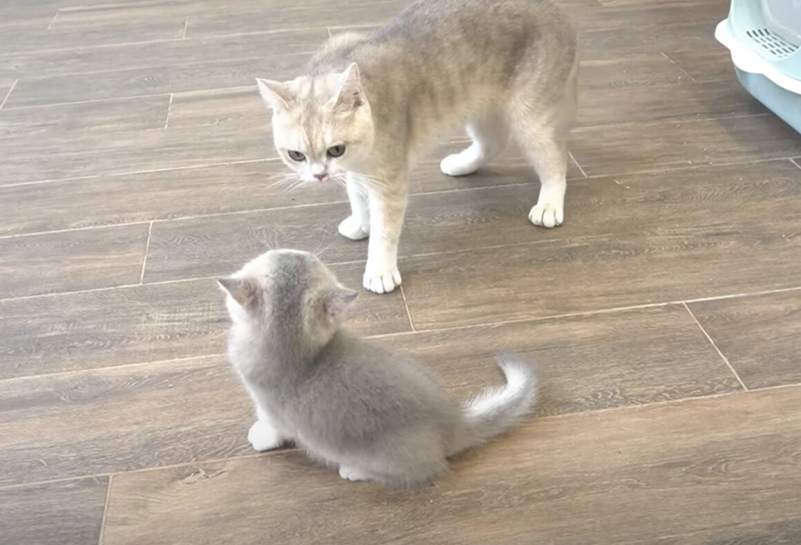 ママ猫に攻撃する子猫、返り討ちにあう笑