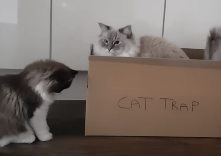 「キャットトラップ」と書かれた箱の前に 集まってきたお兄さん猫と子猫さん。 猫の罠の名前の通り、これをみたら 思わず入りたくなっちゃうのが猫の性。 生後5ヶ月になるという子猫さんは、 最近はなんでもお兄さん猫の真似をしたがるそうで この日も箱の... -