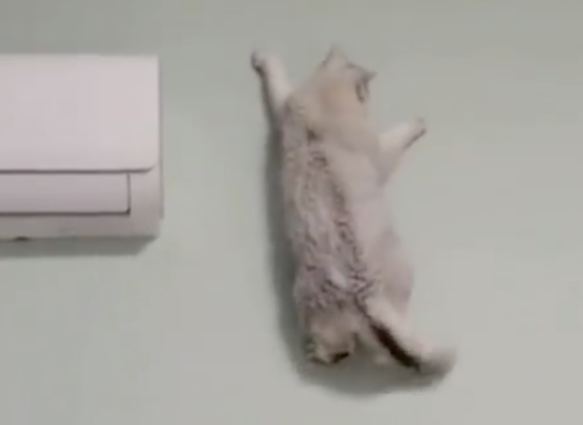 忍者!? 壁にぴったりと張り付いて移動する猫にびっくり!