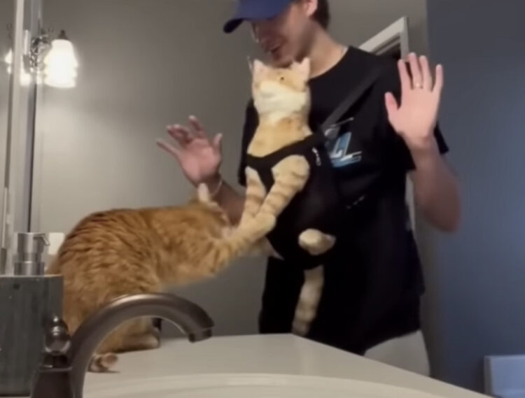 NO、NO〜!!英語でお風呂に入りたくないことを伝える猫。
