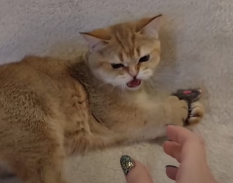 怒った顔も可愛い…おもちゃを取られたくなくて、威嚇してくる猫さん。