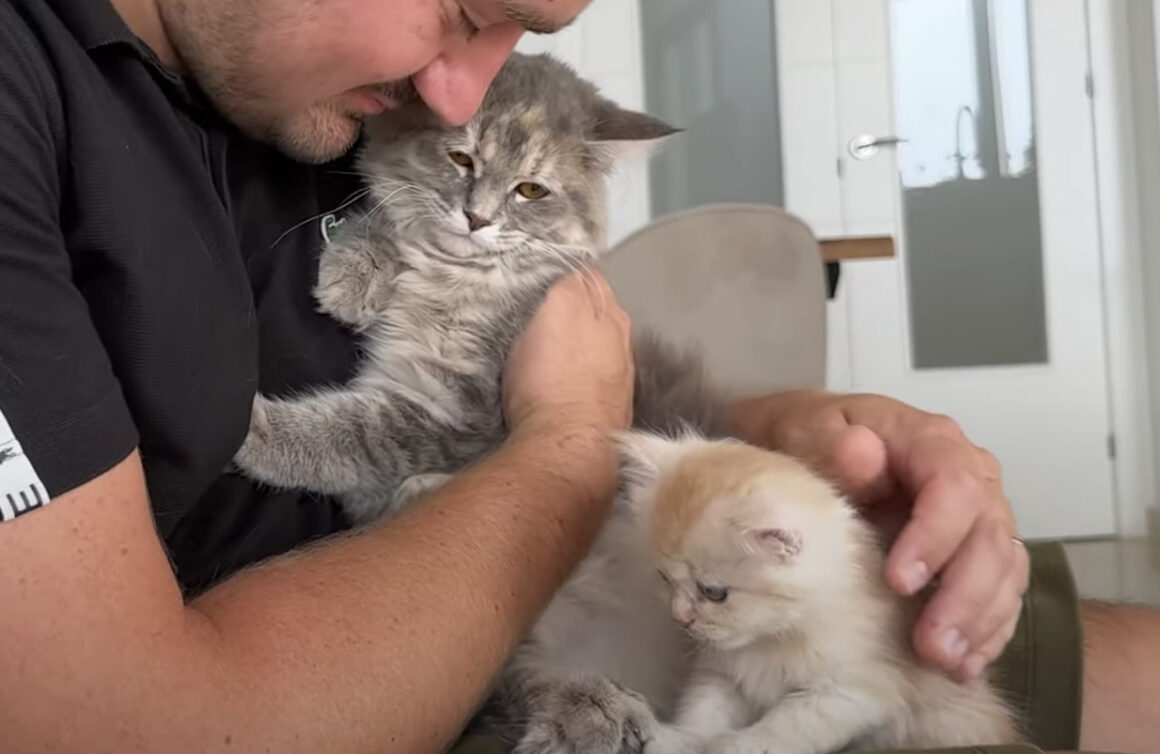 パパさんに抱っこされている、 少し大きいけど、まだまだ子猫の灰色猫さん。 連れて行かれたソファには さらに小さい子猫さんが待っていた! キョトンとしている子猫さんに対して、 「シャー!」と威嚇しながら びっくりしている灰色の猫さん。 パパさんと...