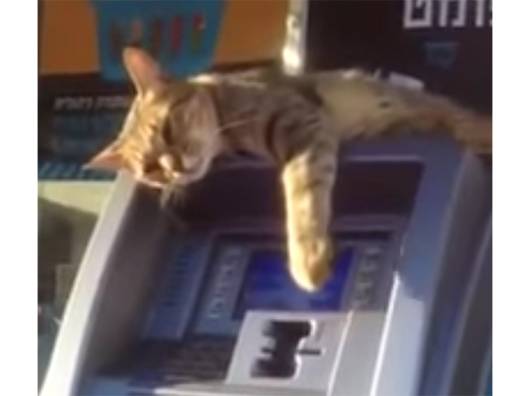 セキュリティは万全! 猫警備員のいるATM。