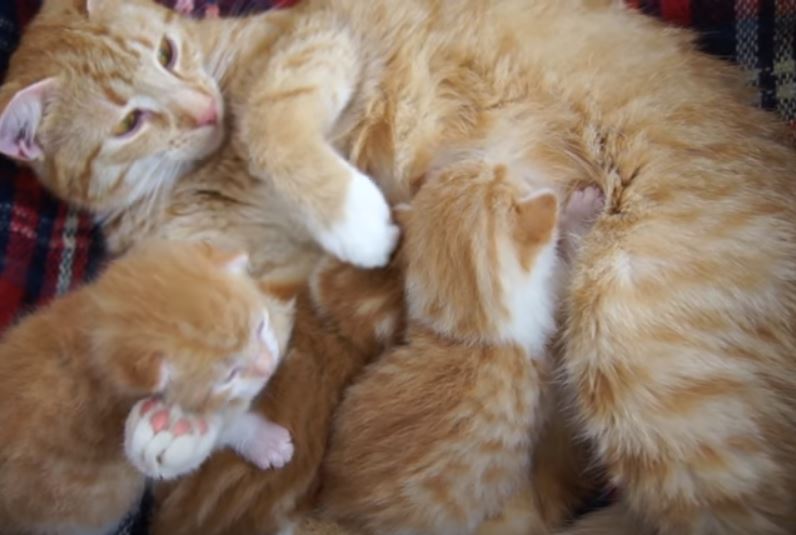 子猫におっぱいをあげる親猫。愛情いっぱい。